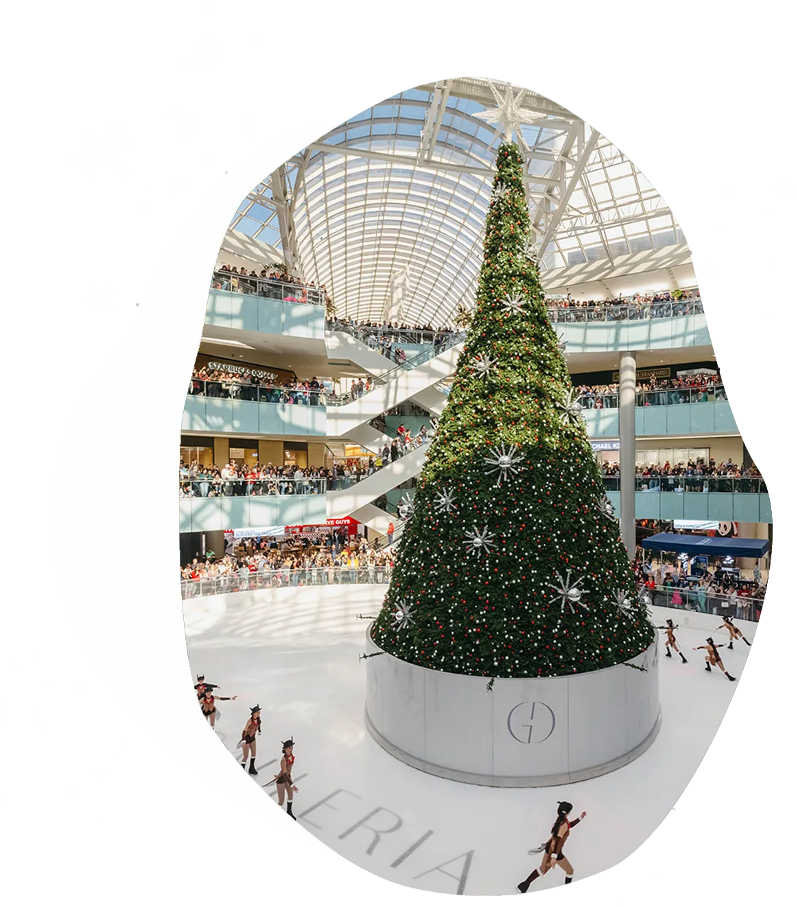 Spectacular ice-skating show with a fireworks finale featuring Olympic skaters, and Missile Toes, Galleria’s famed backflipping ice-skating Santa.
