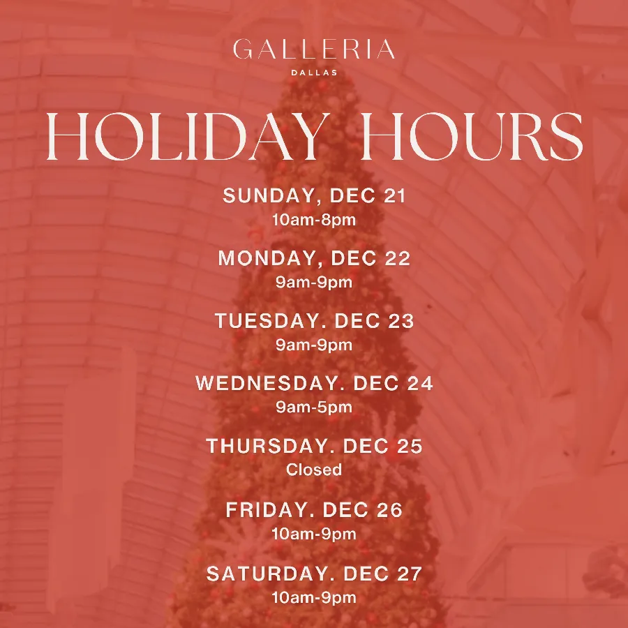 - Store and restaurant hours may vary.