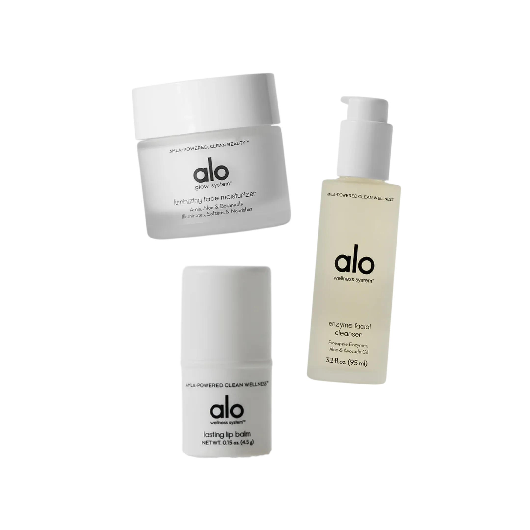 Including facial cleanser, moisturizer, and lip balm